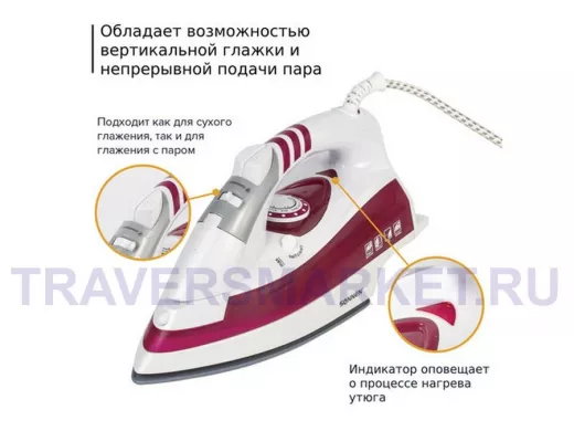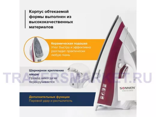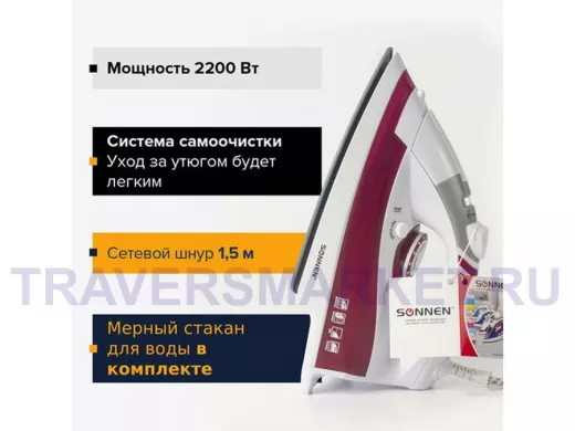 SONNEN SI-218 - простой в использовании утюг, позволяющий легко прогладить одежду и постельное бельё. Подходит как для сухого глажения, так и для глажения с паром.