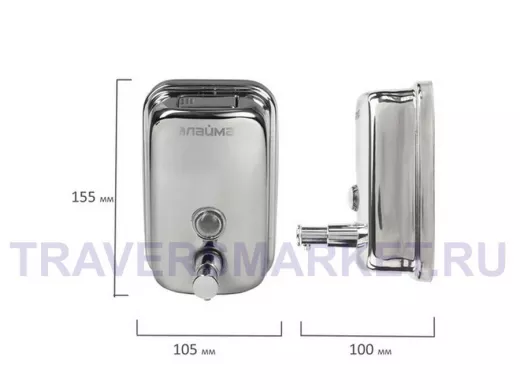 Наливной диспенсер для жидкого мыла из нержавеющей стали обеспечивает высокую гигиеничность. Выдача мыла осуществляется экономичными порциями. Возможна также заправка диспенсера шампунем, кондиционером для волос и т.п.