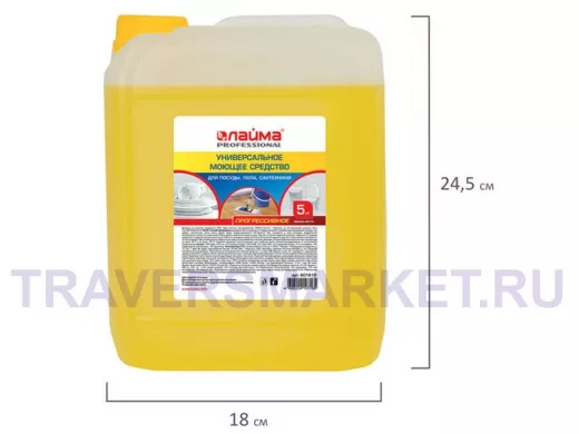 Универсальное моющее средство LAIMA PROFESSIONAL предназначено для мытья и обезжиривания различных твердых поверхностей: посуды, поверхностей бытового и производственного оборудования, стен и полов.