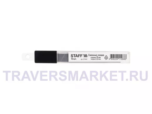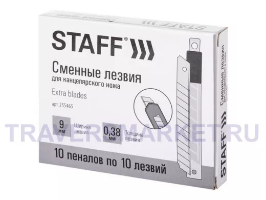 Заказать звонокЛезвия для ножей 9 мм КОМПЛЕКТ 10 ШТ, толщина лезвия 0,38 мм, в пластиковом пенале "BR-71575"
