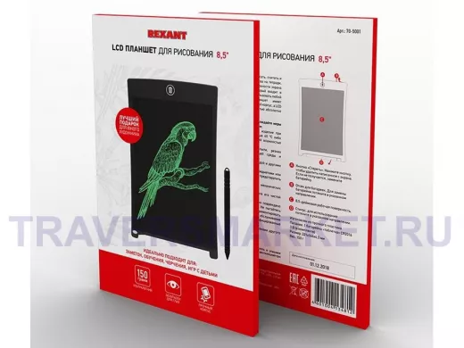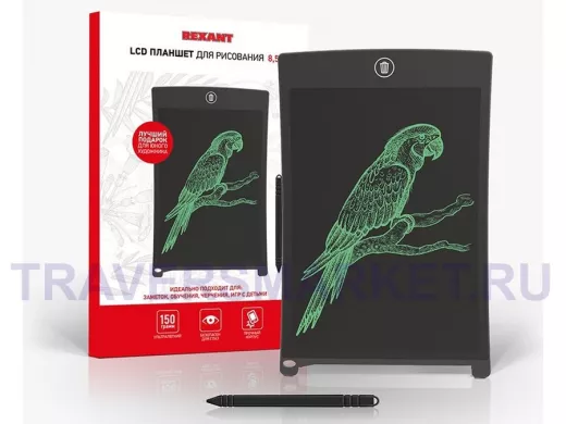 Планшет Rexant® 8,5 дюймов предназначен для фиксирования заметок и создания графических простейших рисунков. Он избавит от необходимости держать под рукой блокноты, бумагу для записей, переводить кучу бумаги на временные записи и покупать бесконечно альбомы для детских зарисовок.
