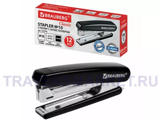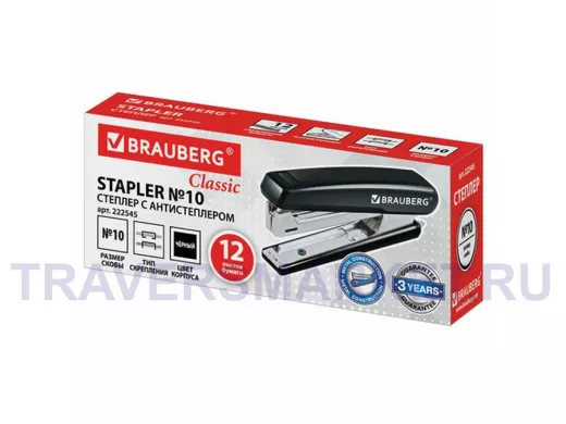 Заказать звонокСтеплер №10 "BR-71291" "Classic", до 12 листов, с антистеплером, черный