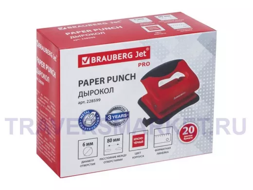 Заказать звонокДырокол "BR-111927" "JET PRO", до 20 листов, красно-черный