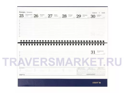 Внутренний блок содержит 60 листов офсетной бумаги белого цвета плотностью 60 г/м2. Обложка из бумвинила и твердый переплет обеспечивают долгий срок службы. Подходит для тиснения только фольгой. Скрепление осуществляется с помощью евроспирали. Размер изделия - 285х112 мм. С планингом STAFF выполнять повседневные задачи станет проще, чем когда-либо! Приобрести можно в нашем интернет-магазине!