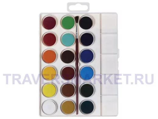 Заказать звонокКраски акварельные "BR-102567", 18 цветов, с кистью, пластиковая коробка, европодвес, 800/18