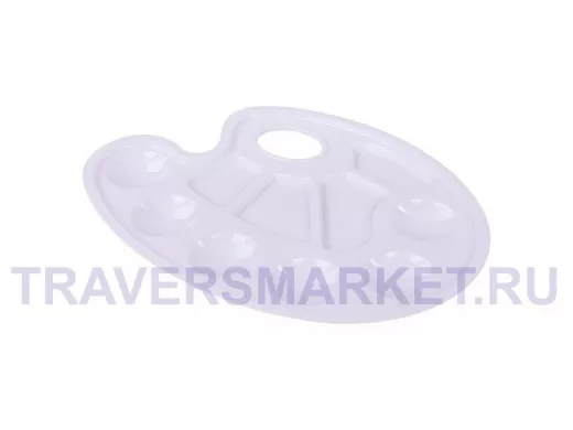 Заказать звонокПалитра для рисования белая "BR-74181", овальная, 6 ячеек для красок и 4 ячейки для смешивания