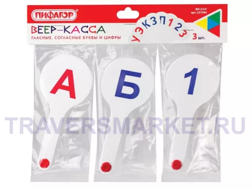 Заказать звонокВеер-касса (гласные, согласные и цифры) "BR-74673", НАБОР 3 шт., европодвес