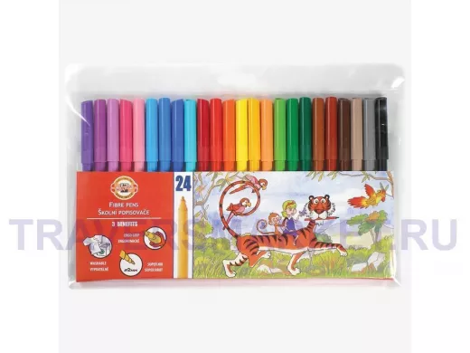 Фломастеры "BR-101267", 24 цвета, смываемые, трехгранные, пластиковая упаковка, европодвес