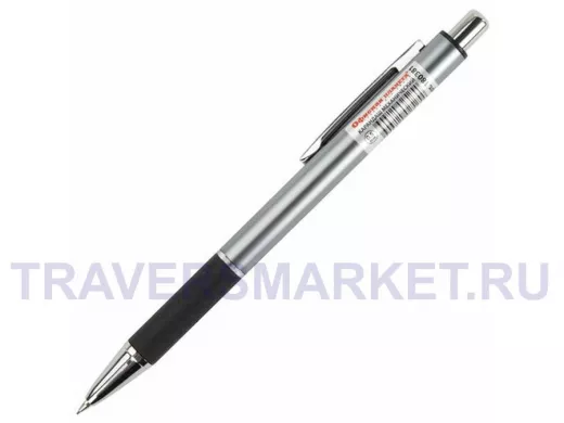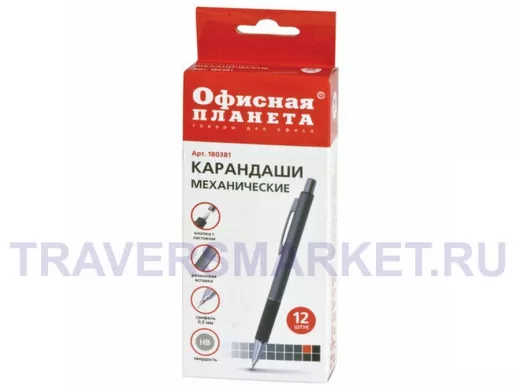 Стильный механический карандаш ОФИСНАЯ ПЛАНЕТА с нажимным механизмом, удобной прорезиненной зоной захвата и ластиком на кнопке.