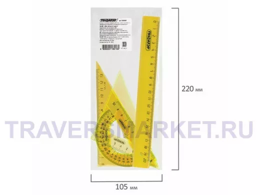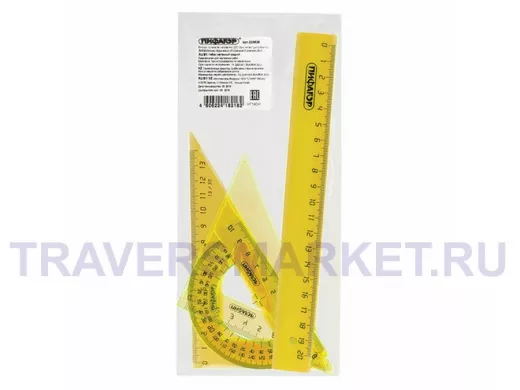- Комплектация: линейка, малый треугольник, транспортир