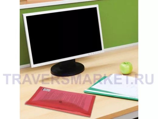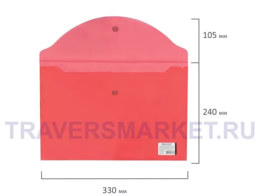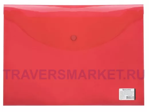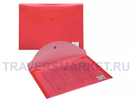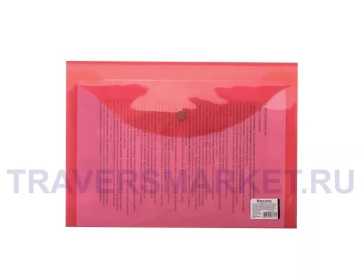 Заказать звонокПапка-конверт с кнопкой "BR-76403", А4, до 100 л, прозрачная, красная, 0,15 мм