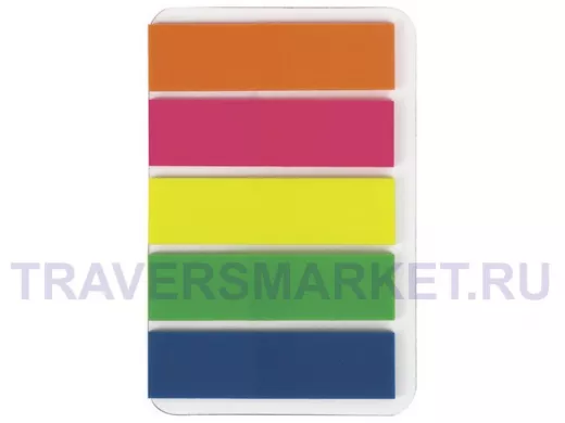 Заказать звонокЗакладки клейкие "BR-78929" НЕОНОВЫЕ пластиковые,45х12мм, 5 цветов х 20 листов,на пласт.основан