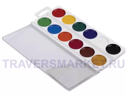 Заказать звонокКраски акварельные "BR-83017" "МЕДОК", 12 цветов, без кисти, пластиковая коробка
