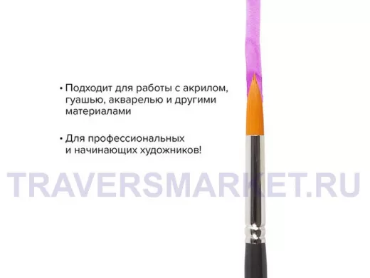 Кисть предназначена для работ густыми красками: гуашь, акрил, масло, темпера. Идеальна для водорастворимых масляных красок.