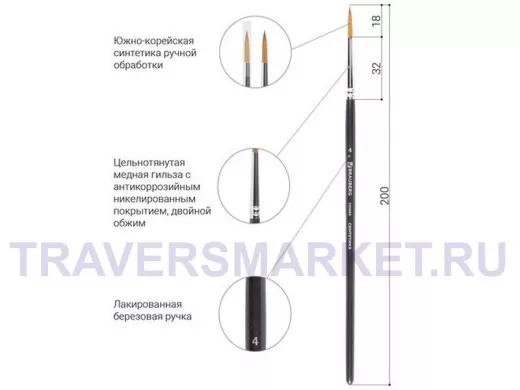 - Диаметр (ширина) кисти: 4 мм