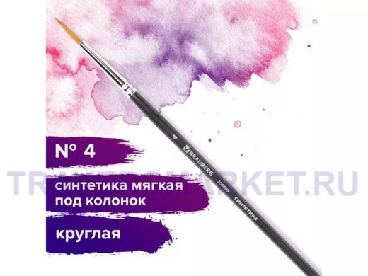 Заказать звонокКисть художественная проф. "BR-80180" ART CLASSIC, синтетика мягкая под колонок, кругл, № 4, кор руч