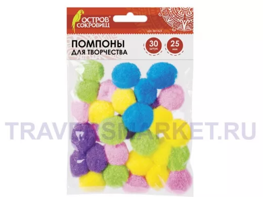 Помпоны ОСТРОВ СОКРОВИЩ прекрасно подходят для воплощения творческих идей в жизнь. Их можно использовать для создания аппликаций, игрушек и прочих поделок. Помпоны выполнены из качественных материалов и могут использоваться как взрослыми, так и детьми.