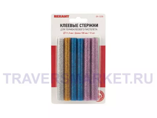 Заказать звонокКлеевые стержни, диаметр 11,0мм, длина 100мм, цветной с блестками (12шт) REXANT цена за 1 упаковку