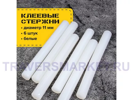 Заказать звонокКлеевые стержни, диаметр 11,0мм, длина 100мм, белые, КОМПЛЕКТ 6 штук "BR-79848", европодвес