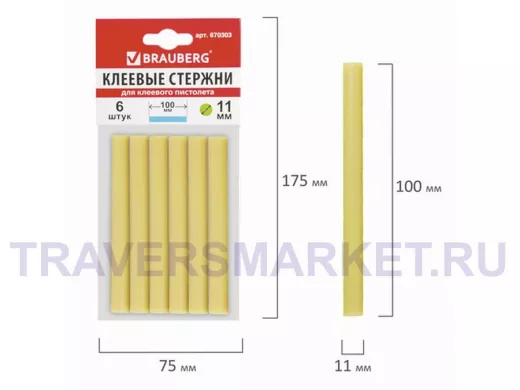 Термоклей прочно и быстро скрепит различные материалы: бумагу, дерево, картон, стекло, пластмассу, металл, кожу, синтетические волокна и т.д. Диаметр клеевого стержня 11 мм и длина 10 см являются самыми востребованными параметрами для выполнения работ. Цвет клеевого стержня - жёлтый. В комплект входит 6 клеевых стрежней, обеспечивающих непрерывный рабочий процесс. Теперь создать разнообразные поделки, а также склеить в быту мелкие детали можно быстро, удобно и выгодно! Приобрести клеевые стержни BRAUBERG можно в нашем интернет-магазине.