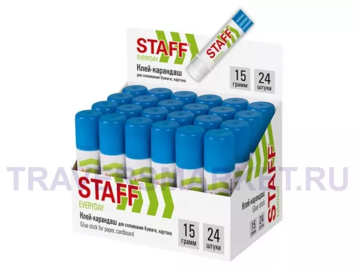 Объем - 15 г. Клей-карандаш STAFF легко наносится и распределяется по поверхности. Не токсичен и безопасен для здоровья. Удобен в использовании: он не пачкает руки, стол, одежду; легко удаляется при помощи воды. Плотно прилегающий колпачок предотвращает высыхание клея. Срок годности - 3 года. Разумная экономия для офиса! Заказать клей-карандаш STAFF можно на нашем сайте. Спешите оформить заказ!