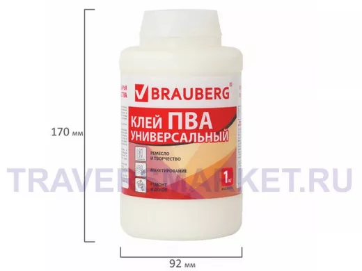Клей ПВА универсальный BRAUBERG применяется для изделий из бумаги, картона, тканей, виниловых и бумажных обоев. Может использоваться в качестве модификатора для улучшения технологических и адгезионных свойств.