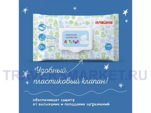 Заказать звонокСалфетки влажные КОМПЛЕКТ 120 шт, для детей "BR-78412", универсальные очищающие, клапан крышка