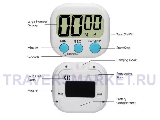 Таймер-секундомер белый "ABI-128413" для приготовления еды на кухне