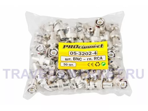 ПЕРЕХОД штекер BNC - гнездо RCA PROconnect предназначен для подключения кабеля с разъемом штекер RCA к различному видеооборудованию, имеющему BNC-разъемы. Применяется главным образом для построения видеосистем. С одной стороны располагается гнездо RCA-разъема, а с другой штекер BNC-разъема. Изготовлен переход из никелированного сплава первичной меди (биметалл), что гарантирует минимальный уровень потерь при прохождении сигнала. Такой соединитель имеет ряд положительных преимуществ: