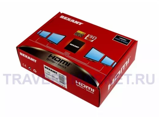 HDMI делитель x3 REXANT, он же сплиттер делит видео и аудио сигнал с источника HDMI на несколько устройств (например, ЖК телевизоры или мониторы). Каждый выход разветвителя оборудован усилителем, что позволяет подключать к нему кабели большой длины. При этом Full HD изображение со звуком будет передаваться без потерь. Изделие отлично подойдет для демонстрации ЖК-панелей в магазинах, а так же для инсталляций с несколькими экранами. Изделие питается от сети через адаптер (поставляется в комплекте).