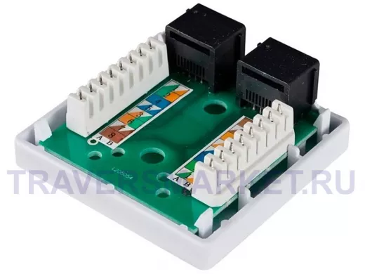Заказать звонокРозетка для витой пары 8р8c 2порта UTP (RG-45) 5 кат. накладная тип 110