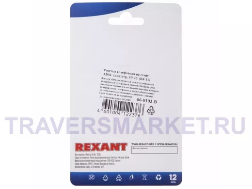 Розетка телефонная на стену, ADSL сплиттер, 6Р-4С (RJ-11) REXANT