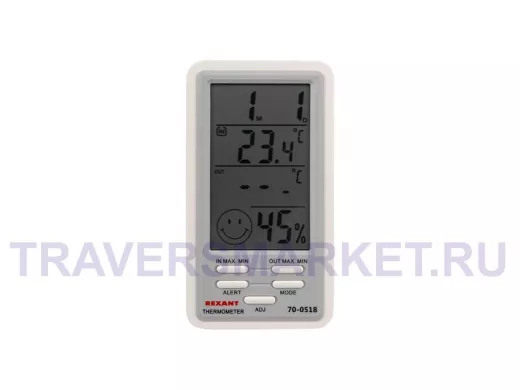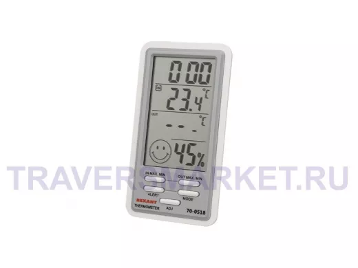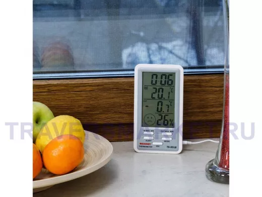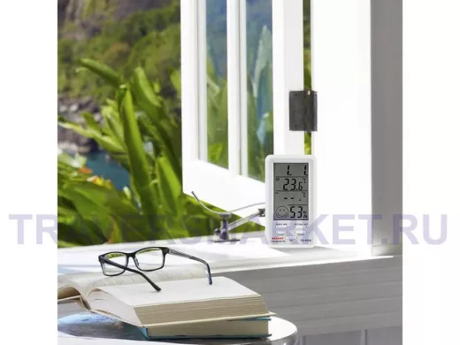Комнатная метеостанция предназначена для измерения показаний температуры и влажности в помещении. Регистрирует в памяти максимальное и минимальное значения температуры и влажности. Отображает общий уровень метеокомфорта в помещении. Имеет настольную подставку и магнитное крепление.