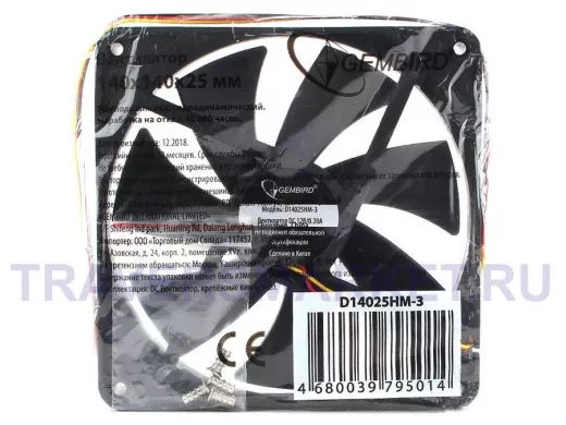 Вентилятор +12В; 140х140х25мм; Gembird, гидродинамический, 3 pin, провод 40 см