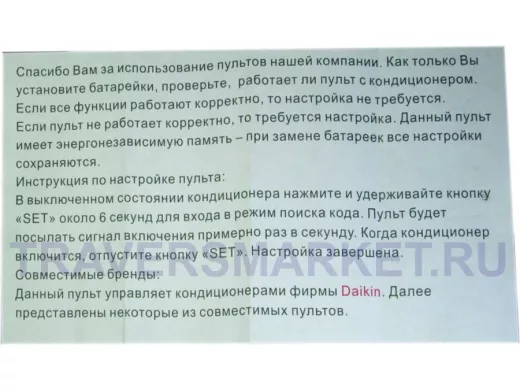 - Универсальный пульт Huayu для Daikin K-DK680 – это универсальный пульт, который заменяет множество пультов определенного бренда. В основном эти пульты не требуют настройки, просто вставили батарейки и пользуетесь, но иногда, когда настройка все-таки необходима, она сводится к нажатию всего двух клавиш. Его корпус очень часто совпадает с корпусом вашего родного пульта, поэтому у вас не будет привыкания к расположению на нем кнопок. Все они находятся на привычных местах.