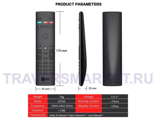 Пульт работает от двух батареек ААA (в комплекте нет).