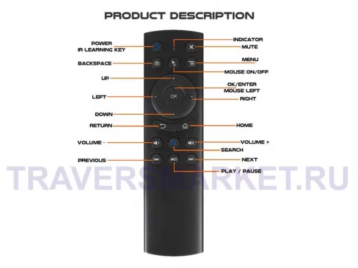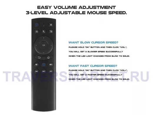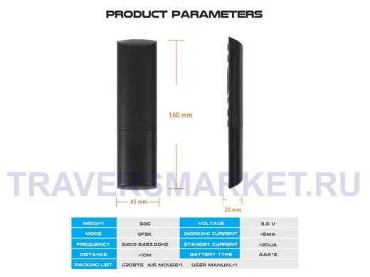 Встроенный 6-осевой гироскоп: эта мышь с воздушным дистанционным управлением может определять изменение направления и скорости, поэтому вы можете перемещаться прямо в воздухе, чтобы управлять им.