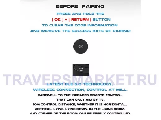 Затем длительное нажатие клавиши "OK" + "return", когда светодиод быстро мигает, устройство переходит в режим предварительного сопряжения.