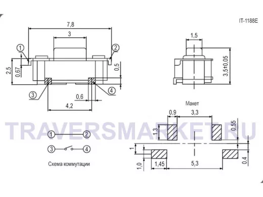 Заказать звонокIT-1188E (6x3x3.5) Тактовые кнопки