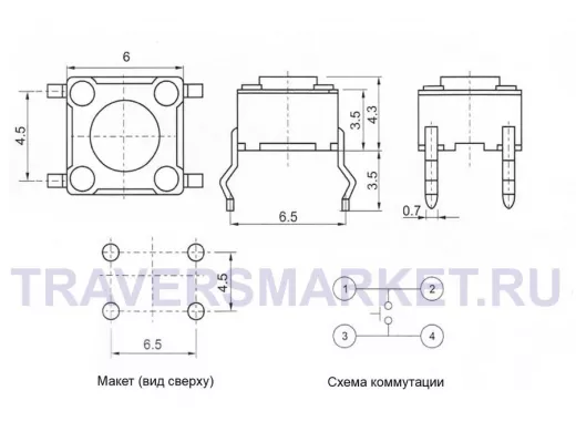 Заказать звонокKAN0611-0431B 6x6x4.3 mm Тактовые кнопки