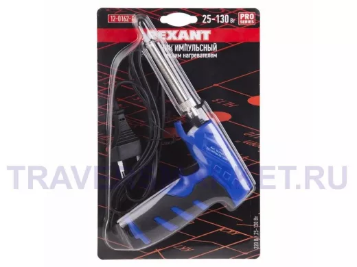 Паяльник импульсный с керамическим нагревателем (Профи) 25-130 Вт REXANT предназначен для ручного монтажа радиоэлементов. Он используется для пайки электродеталей в двух мощностных режимах: 25 и 130 Вт.