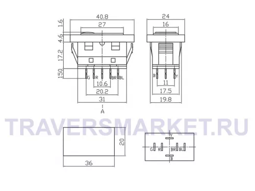 Выключатель (стеклоподъемника) клавишный 12V 20А (6с) (ON)-OFF-(ON) черный с подсветкой и проводом предназначен для коммутации электрических цепей напряжением 12В. Такой клавишный переключатель применяются в качестве комплектующих изделий автотранспортного электрооборудования (в легковых и грузовых автомобилях, автобусах и других транспортных средствах). Клавиша стеклоподъемника имеет три положения и подсветку (для облегчения поиска при отсутствии освещения). Принцип действия основан на перемещении клавиши в одну из позиций. Для переключения в нужное положение требуется приложить некоторые усилия на клавишу. Монтаж осуществляется без применения винтов на плоских панелях толщиной от 0.8мм до 3мм. Подключение клавиши осуществляется с помощью проводов (15см), методом скрутки или пайки, либо используя соединительные клеммы.