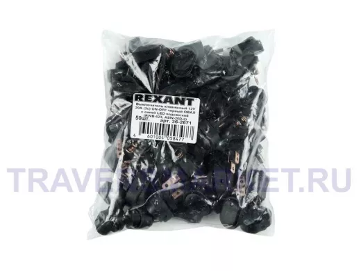 Выключатель клавишный 12V 20А (3с) ON-OFF черный ОВАЛ с синей LED подсветкой REXANT