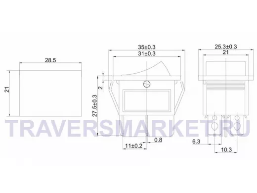 Выключатель клавишный 250V 15А (4с) ON-OFF черный предназначен для коммутации электрических цепей переменного тока напряжением до 250В. Клавишные (Рокерные) выключатели применяются в качестве комплектующих изделий различного электрооборудования (в сетевых фильтрах и удлинителях, аудио-оборудовании, блоках питания, электроустановках на различных производствах, автомобилях, и многих других местах). Такой клавишный переключатель имеет два положения. Принцип действия основан на перемещении клавиши в одну из позиций. Для переключения в нужное положение требуется приложить некоторые усилия на клавишу. Монтаж осуществляется без применения винтов на плоских панелях толщиной от 0.8мм до 3мм. Подключение контактов осуществляется плоской клеммой 6.6мм, либо с помощью пайки.