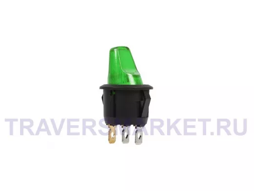Выключатель клавишный круглый 12V 16А (3с) ON-OFF зеленый с подсветкой предназначен для коммутации электрических цепей напряжением 12В. Клавишные (Рокерные) выключатели применяются в качестве комплектующих изделий различного электрооборудования (аудио-оборудовании, блоках питания, электроустановках на различных производствах, автомобилях, и многих других местах). Такой переключатель имеет два положения и специфическую форму клавиша-тумблер. Принцип действия основан на перемещении клавиши в одну из позиций. Для переключения в нужное положение требуется приложить некоторые усилия на клавишу. Монтаж осуществляется без применения винтов на плоских панелях толщиной от 0.8мм до 3мм. Подключение контактов осуществляется плоской клеммой, либо с помощью пайки.