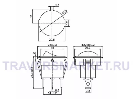 Выключатель клавишный круглый 250V 6А (3с) ON-OFF зеленый с подсветкой предназначен для коммутации электрических цепей переменного тока напряжением до 250В. Клавишные (Рокерные) выключатели применяются в качестве комплектующих изделий различного электрооборудования (в сетевых фильтрах и удлинителях, аудио-оборудовании, блоках питания, электроустановках на различных производствах, автомобилях, и многих других местах). Такой клавишный переключатель имеет два положения. Принцип действия основан на перемещении клавиши в одну из позиций. Для переключения в нужное положение требуется приложить некоторые усилия на клавишу. Монтаж осуществляется без применения винтов на плоских панелях толщиной от 0.8мм до 3мм. Подключение контактов осуществляется плоской клеммой, либо с помощью пайки.