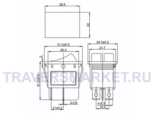 Выключатель клавишный 250V 15А (6с) ON-OFF синий с подсветкой ДВОЙНОЙ предназначен для коммутации электрических цепей переменного тока напряжением до 250В. Клавишные (Рокерные) выключатели применяются в качестве комплектующих изделий различного электрооборудования (в сетевых фильтрах и удлинителях, аудио-оборудовании, блоках питания, электроустановках на различных производствах, автомобилях, и многих других местах). Такой клавишный переключатель имеет два положения и две клавиши, что позволит раздельно коммутировать контактные группы. Принцип действия основан на перемещении клавиши в одну из позиций. Для переключения в нужное положение требуется приложить некоторые усилия на клавишу. Монтаж осуществляется без применения винтов на плоских панелях толщиной от 0.8мм до 3мм. Подключение контактов осуществляется плоской клеммой 6.6мм, либо с помощью пайки. Основные характеристики: Номинальное напряжение: 250В; Предельное напряжение: 1500VАС не более 1 минуты; Номинальный ток: 15A (250VAC); Контактное сопротивление: не более 35 мОм; Тип переключения: ON-OFF; Количество контактных групп: 2; Количество контактов в контактной группе: 3; Фиксация положений: да; Индикатор коммутационных положений: синий; Рабочая температура: от -25℃ до +85℃; Ресурс: 10 000 циклов.