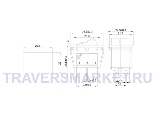Выключатель клавишный 250V 15А (6с) ON-OFF черный с подсветкой ДВОЙНОЙ предназначен для коммутации электрических цепей переменного тока напряжением до 250В. Клавишные (Рокерные) выключатели применяются в качестве комплектующих изделий различного электрооборудования (в сетевых фильтрах и удлинителях, аудио-оборудовании, блоках питания, электроустановках на различных производствах, автомобилях, и многих других местах). Такой клавишный переключатель имеет два положения и две клавиши, что позволит раздельно коммутировать контактные группы. Принцип действия основан на перемещении клавиши в одну из позиций. Для переключения в нужное положение требуется приложить некоторые усилия на клавишу. Монтаж осуществляется без применения винтов на плоских панелях толщиной от 0.8мм до 3мм. Подключение контактов осуществляется плоской клеммой 6.6мм, либо с помощью пайки.
