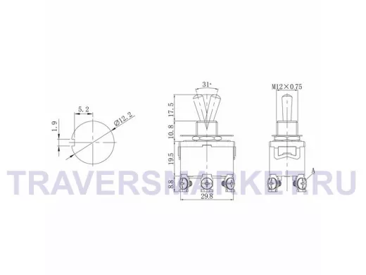 Тумблер 250V 10А (6c) ON-(ON) двухполюсный предназначен для коммутации электрических цепей переменного тока напряжением до 250В. Такая разновидность переключателей применяется на лицевых панелях в качестве комплектующих изделий различного электрооборудования (в измерительных приборах, блоках питания, электроустановках на различных производствах, легковых и грузовых автомобилях, поездах и многих других местах). Отличительной особенностью тумблера является перекидной переключатель, принцип действия которого основан на его перемещении в одну из позиций. Для переключения в нужное положение требуется приложить некоторые усилия. Монтаж осуществляется без применения винтов на плоских панелях толщиной от 0.8мм до 4мм. Подключение контактов осуществляется с помощью винтов.