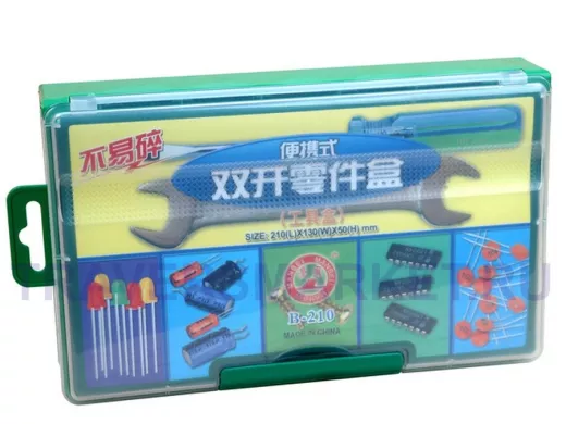 Заказать звонокБокс для радиодеталей B-210 210х130х50 мм глубина 20 мм, 13 ячеек с двух сторон, пластик(прозрачный)
